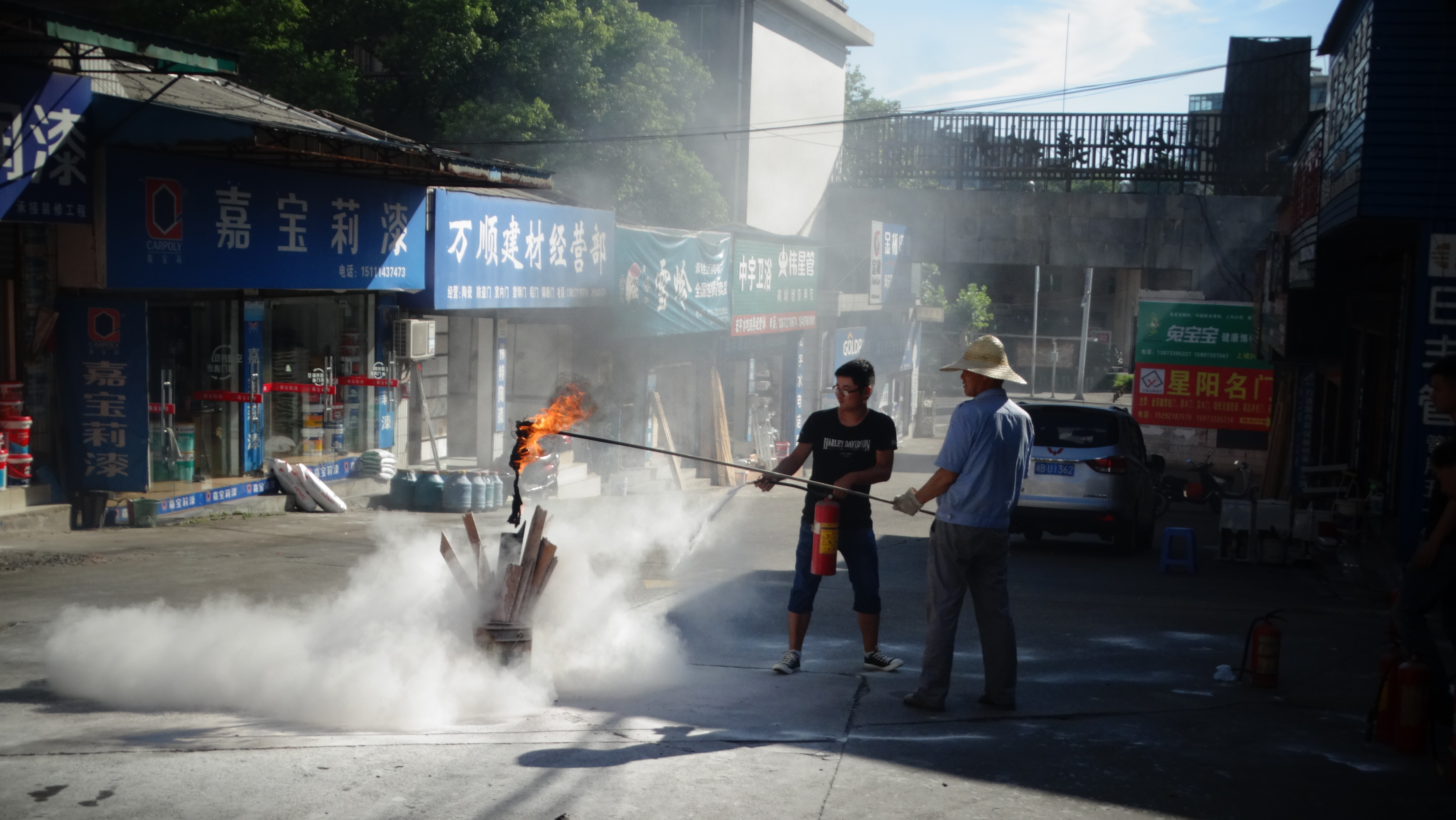 此次消防演習(xí)主要就如何使用手提式干粉滅火器及消防栓消防水帶進(jìn)行滅火進(jìn)行模擬情景演練。