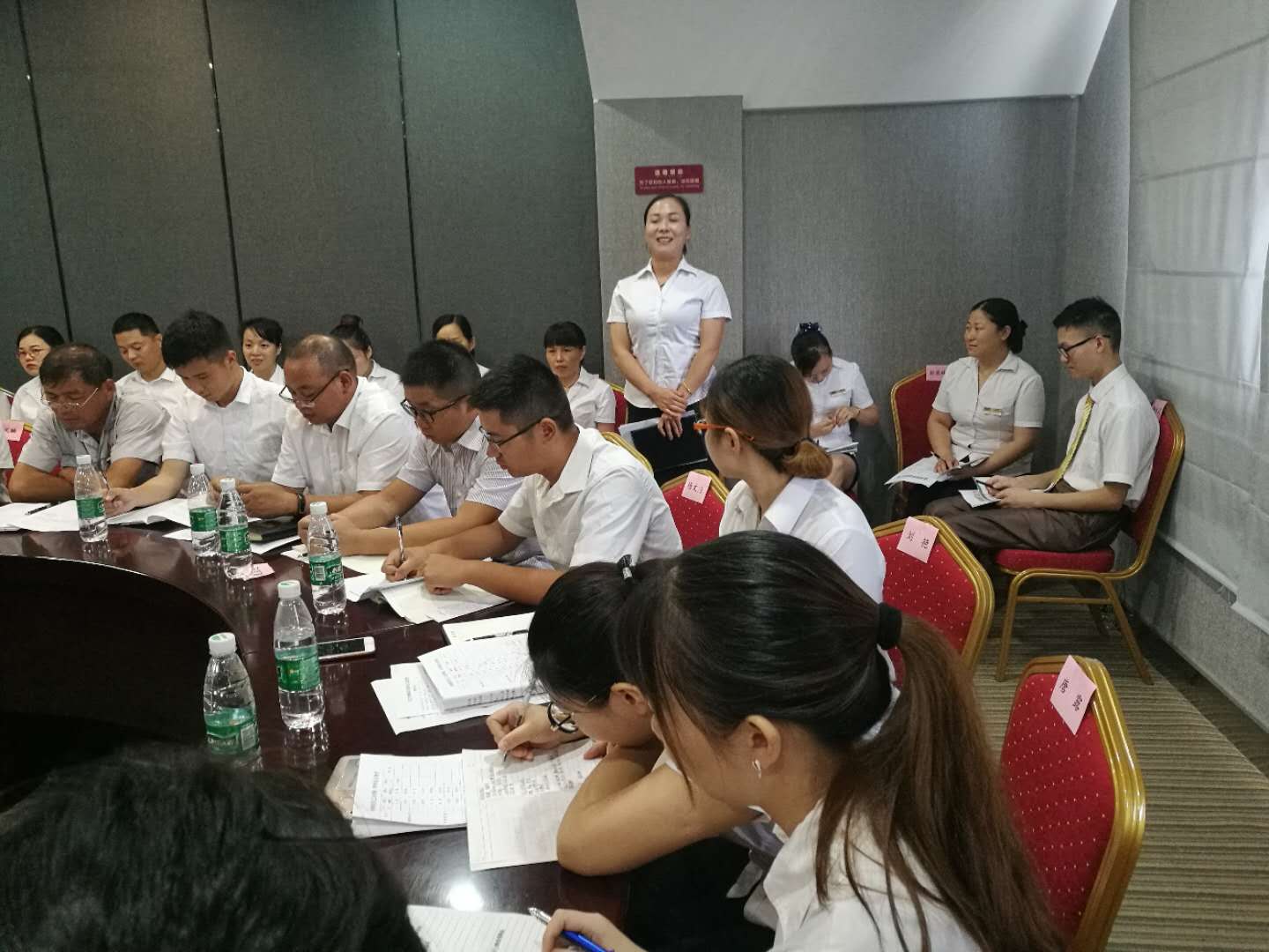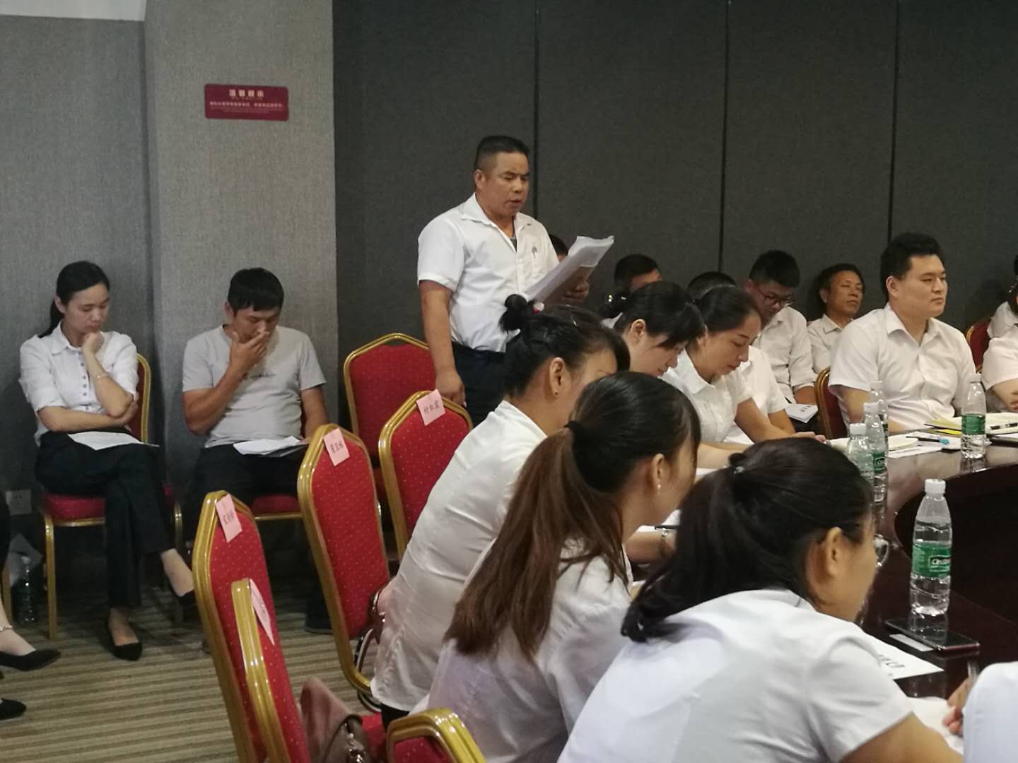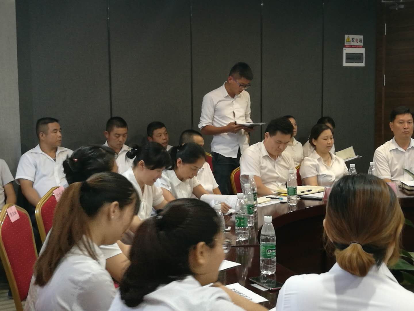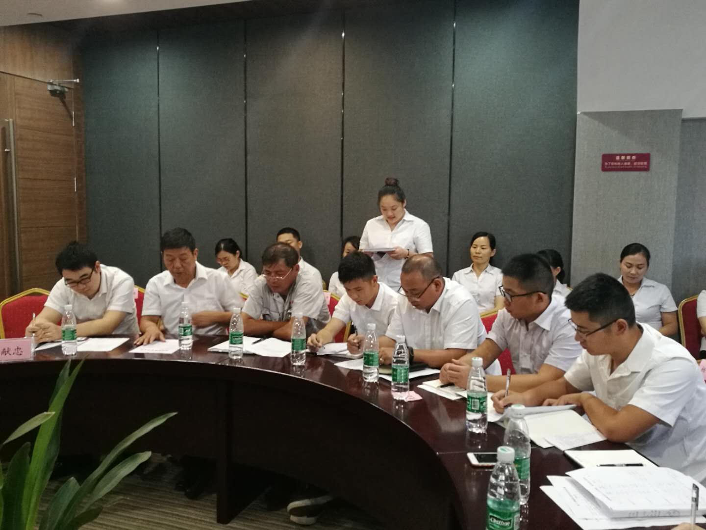 會上首先全體員工一起學習了明集2018【10】號文《關(guān)于老帶新、師帶徒以及員工練好字的規(guī)定》。