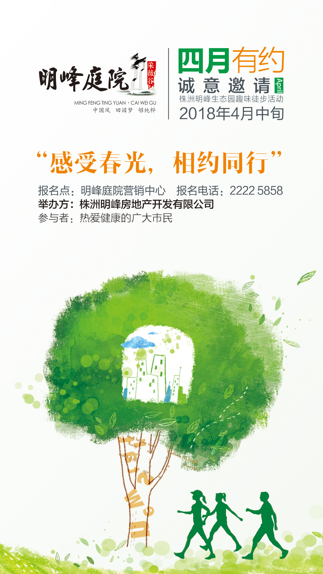 四月有約,明峰庭院誠意邀請熱愛健康的廣大市民參與株洲明峰生態(tài)園趣味徒步活動。